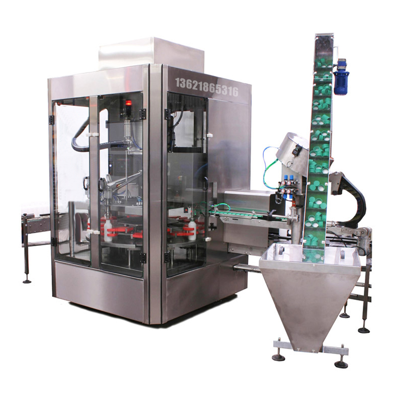 逐步灌裝封口機描述:包裝配料轉盤執行兩項操作:灌裝:灌裝量由容器中產品的重量控制。灌裝后的控制:重量控制允許將測量的數量與目標進行比較,對任何偏差進行自我校正,并進行統計和生產比率。