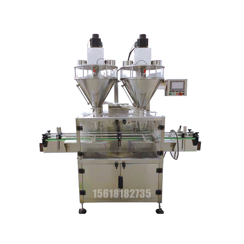 該機主要由機械控制、電氣控制、輸送帶、光電檢測、粉劑充填裝置、擋瓶機構、觸摸屏等組成。下料機構可以選擇粉劑、顆粒劑。